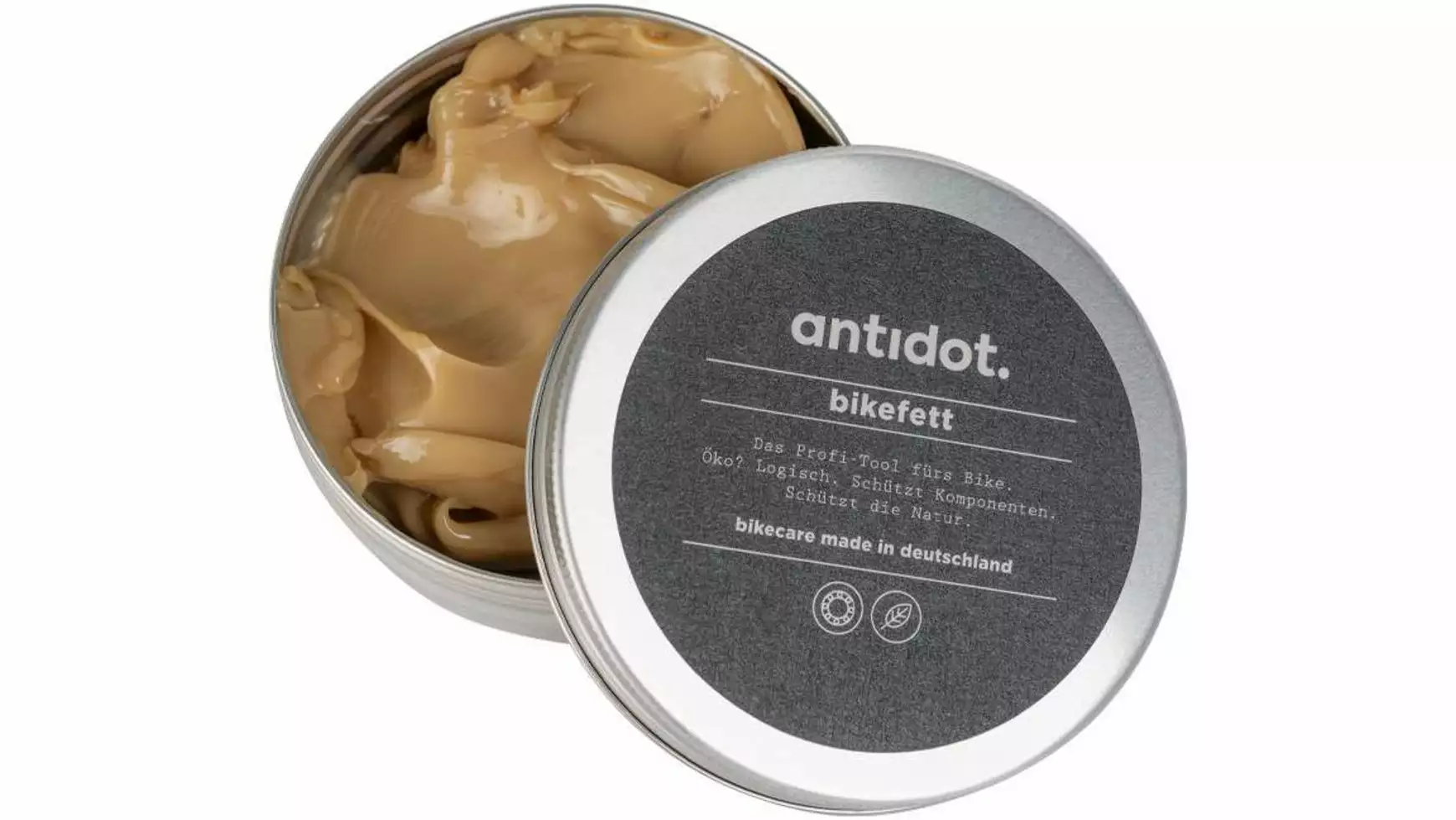 antidot bikefett ist ein biologisches und nachhaltiges Montagefett für jeden Radtyp. Es besteht nachweislich zu 100 % aus biologisch abbaubaren Wirkstoffen und zu 50% aus nachwachsenden Rohstoffen. Verpackt in einer recycelbaren Aluminiumdose. Das bikefett ist frei von Lösemitteln, Farb-, Duft- und Konservierungsstoffen. Es greift keine Oberflächen wie Lack, Metall oder Gummi an. Ist allerdings nicht zur Montage von Carbonteilen geeignet. Kann bedenkenlos an jedem E-Bike eingesetzt werden. Gut fürs Rad. Gut für die Natur. 100 % Made in Deutschland