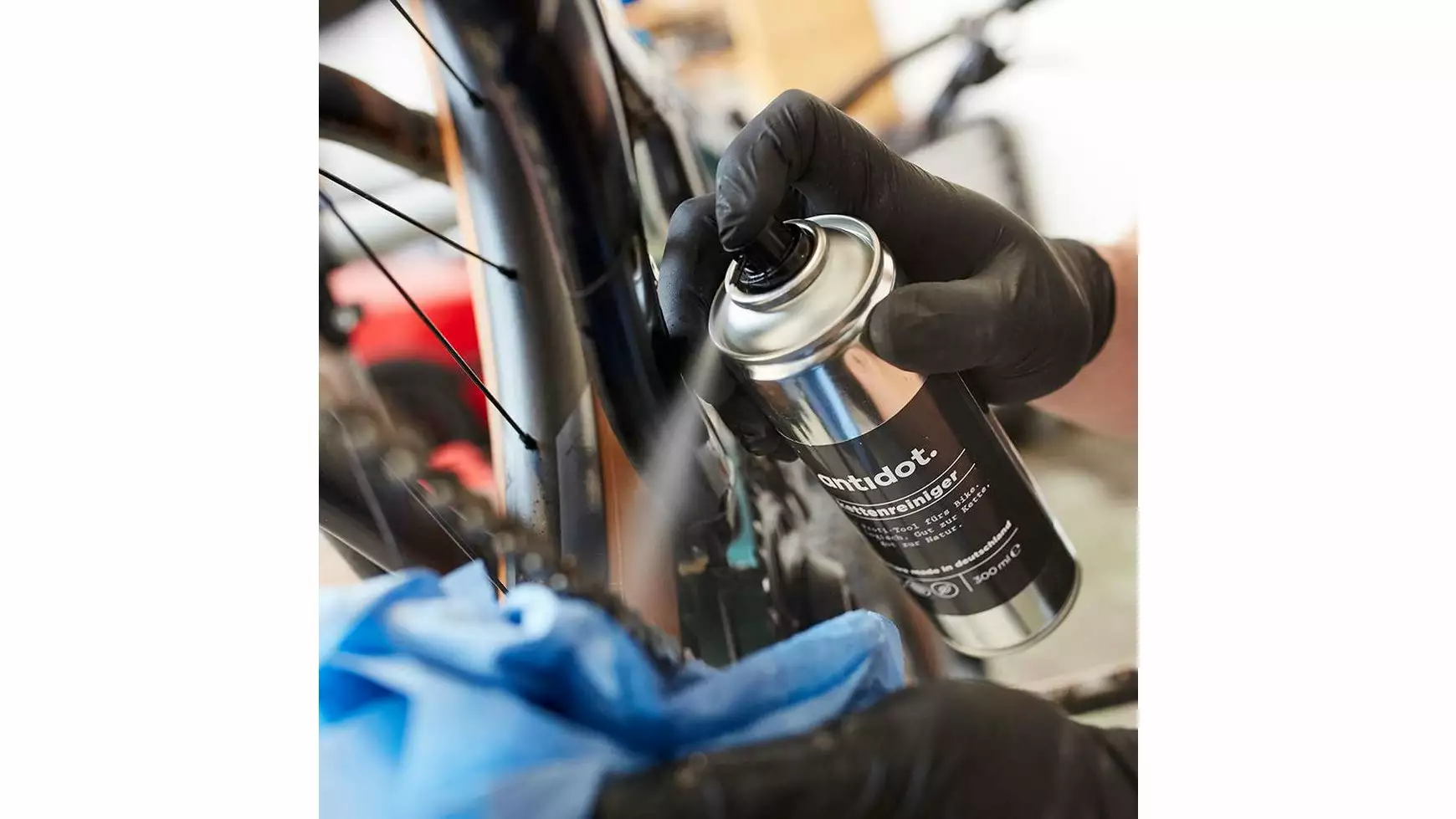 antidot kettenreiniger ist ein nachhaltiger und umweltfreundlicher Antriebsreiniger. Er besteht, soweit technisch möglich, aus biologisch abbaubaren Wirkstoffen und wird in einer praktischen 300ml Sprühdose geliefert. Der Kettenreiniger hat eine herausragende Reinigungskraft und ist vielseitig einsetzbar. Im direkten Vergleich zu anderen Kettenreinigern ist er deutlich ergiebiger und verdunstet schnell und rückstandsfrei. 100 % made in Deutschland. Pro-Tipp: Am besten wird der Reiniger, mit einem dahinter gehaltenen Tuch, direkt auf die Kette gesprüht und nach kurzer Einwirkzeit mit dem Tuch abgewischt. So spart ihr Reiniger und schützt andere Bauteile vor gelösten Schmierstoffen. Sprühnebel auf andere Bauteile solltet ihr immer vermeiden.