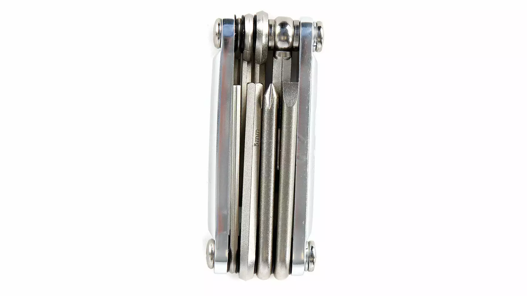 Das CFP Multitool MT-001 enthält die Innensechskantgrößen 2 / 2,5 / 3 / 4 / 5 / 6 und 8mm. Außerdem finden Sie in diesem handlichen, 125 Gramm leichtem Multitool einen Schlitzschraubendreher sowie einen Kreuzschlitzschraubendreher. Das CFP MT-001 enthält somit die 9 wichtigsten Funktionen für jede Tour.