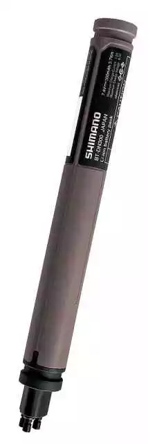 Shimano Di2 BT-DN300 Akku für 12-fach-Schaltungen mit 3 Anschlüssen. Die Anschlüsse sind ausschliesslich mit den schmaleren EW-SD300 Stromkabeln kompatibel. Die Kabel für Wechsel und Umwerfer werden direkt am Akku eingesteckt. (J)