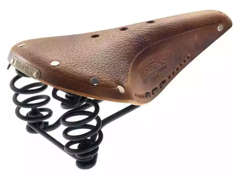 Der FLYER AGED ist angelehnt an das Design des klassischen B17, jedoch zusätzlich mit dämpfenden Spiralfedern ausgestattet. Er eignet sich sowohl als bequemer Sattel für den Alltag als auch für Ausflüge und Touren. Kräftige Spiralfedern nehmen die Stösse von unebenen Strassen auf. Um Scheuerstellen zu vermeiden, sind die Seitenflächen des Sattels weit hinuntergezogen.