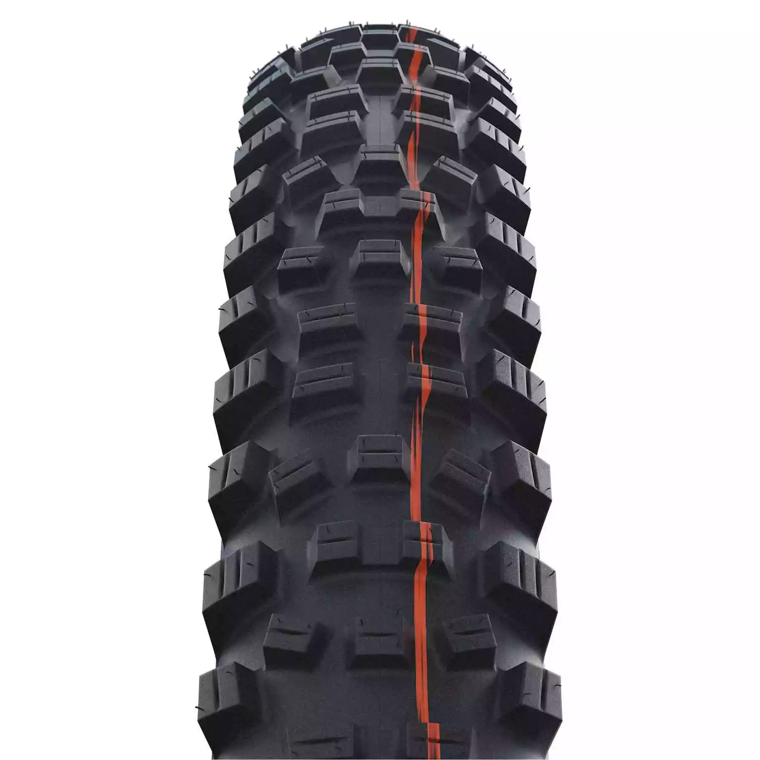 – Super Ground: Die von Schwalbe bewährte SnakeSkin Konstruktion verbessert um eine leichte und flexible Gewebelage, welche den Reifen schnittsicher macht. Sowohl an den Seitenwänden als auch unter der Lauffläche. Daraus resultiert ein niedriges Gewicht bei gutem Pannenschutz. Einsatzbereich: von XC bis Allmountain