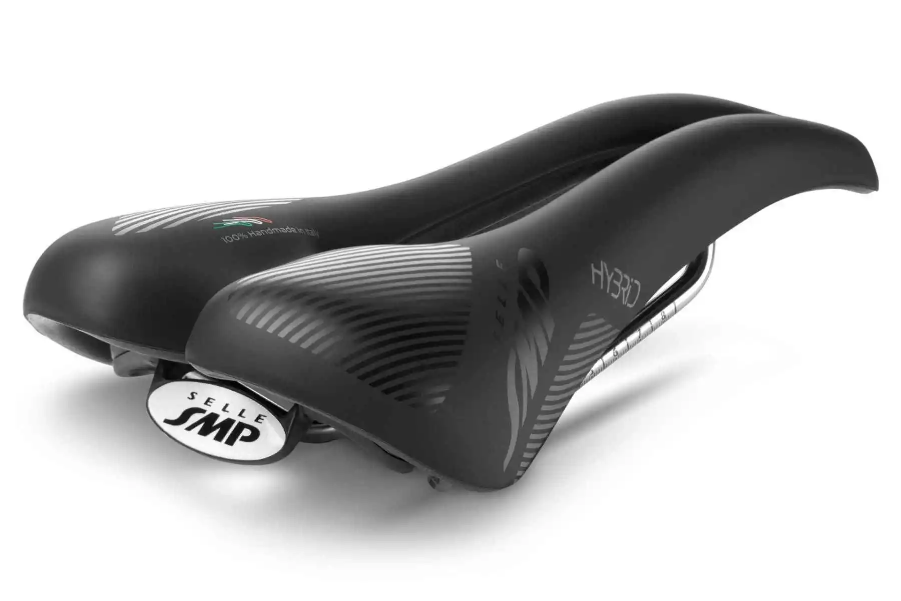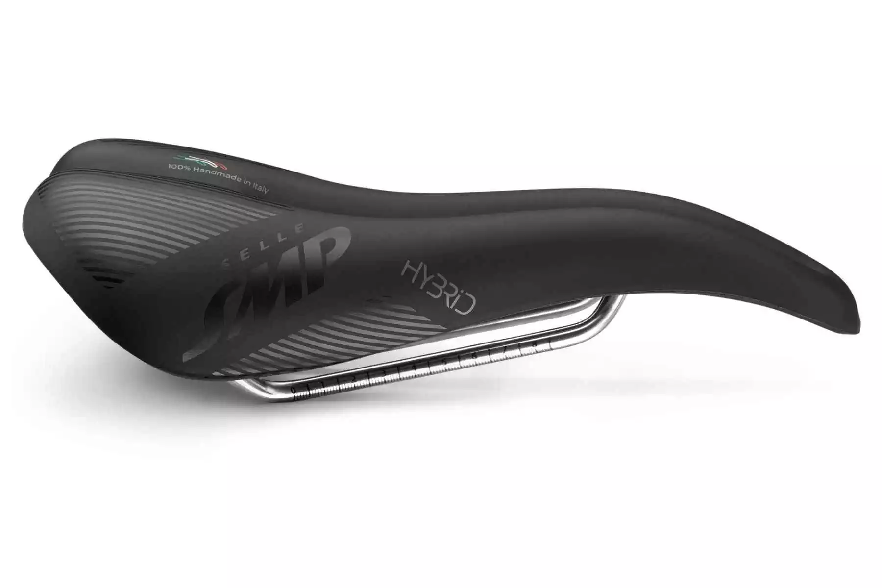 Der HYBRID von Selle SMP ist ein sportlicher Sattel, der durch seine unkonventionelle Sattelnase den Druck auf den Dammbereich senken soll. Die abgesenkte Nase in Kombination mit dem langen, durchgehenden Kanal entlastet den Genitalbereich besonders in sportlich gestreckter Sitzposition. Die verschweisste Satteldecke ist absolut wasserdicht. (I)