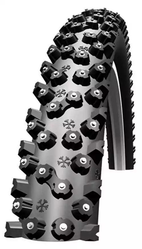 Wer sich gerne mal aufs Glatteis begibt, trifft mit dem ICE SPIKER von Schwalbe eine ausgezeichnete Wahl. Bestens gerüstet für winterliche Biketouren bieten die 304 Spikes maximalen Halt auf weichen und eisigen Böden – ein waschechter Off-Roader halt eben. Auf aperen Strassen nicht zu empfehlen. Drahtreifen. (ID)