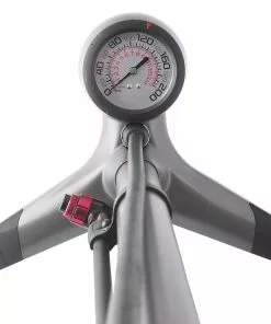 Das integrierte Manometer hat eine Genauigkeit von 3%. Auf der Digitalanzeige lässt sich der Druck in bar, psi und kPa anzeigen. Der Pumpadapter bedient Presta- und Schrader-Ventile. Die Bedienung erfolgt intuitiv über den On-/Off-Knopf.