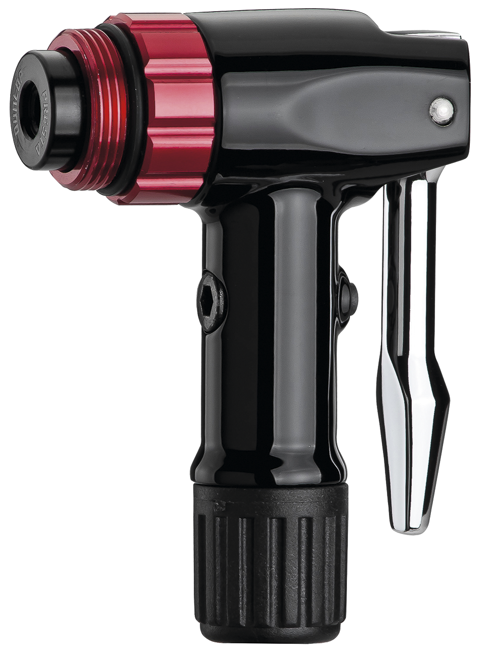 Bei einem Wechsel des Ventiltyps lässt sich der rote Schraubeinsatz am Pumpadapter einfach um 180° wenden und weiter gehts.