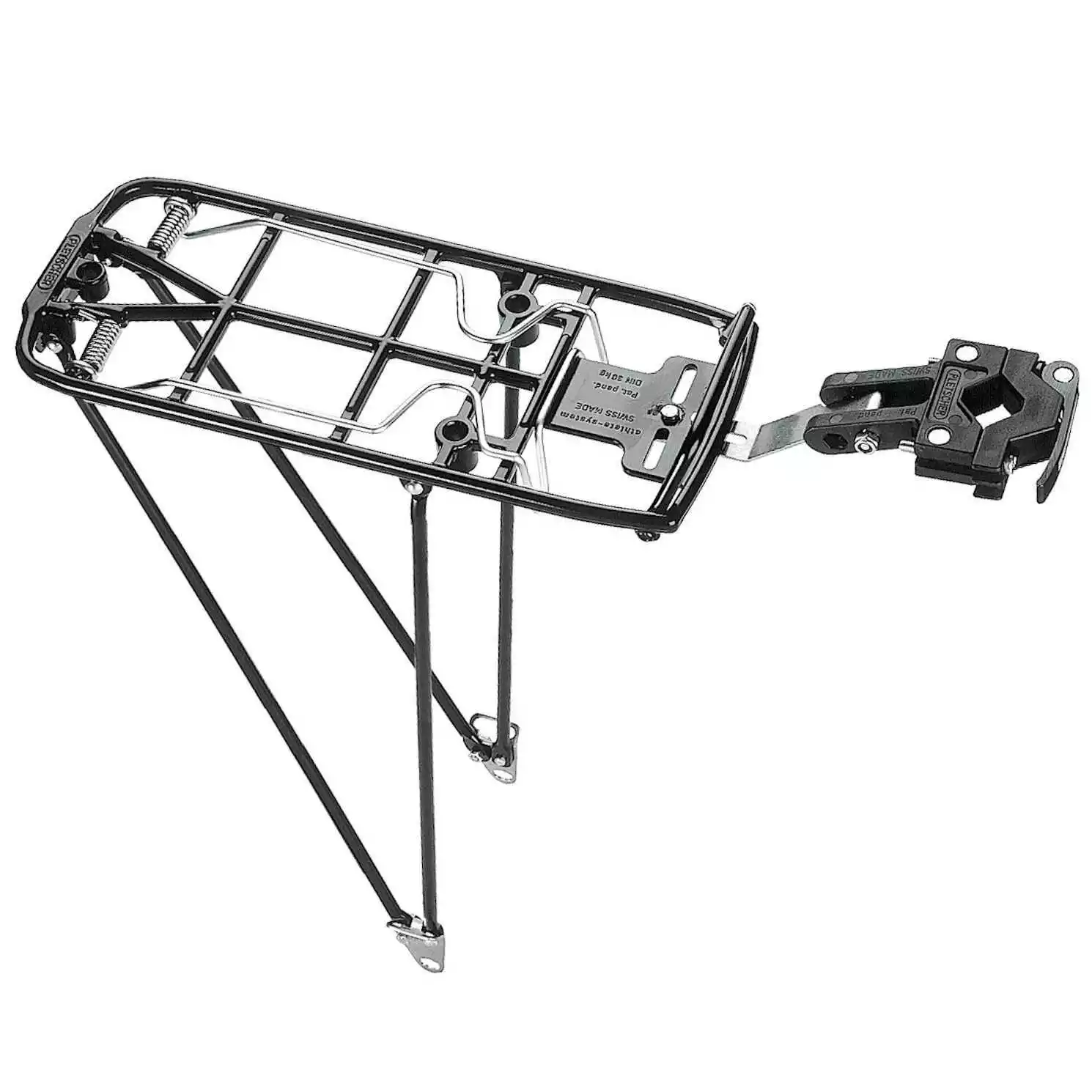 Das QUICK RACK ATHLETE SYSTEM von PLETSCHER ermöglicht dank dem Quick-Rack-Schnellverschluss die werkzeuglose Montage des Gepäckträgers in nur wenigen Sekunden. Das praktische 3-Punkt-System ermöglicht mittels Adapter sicheres und müheloses Befestigen und Wechseln von Kisten oder Körben auf dem Hinterradträger.