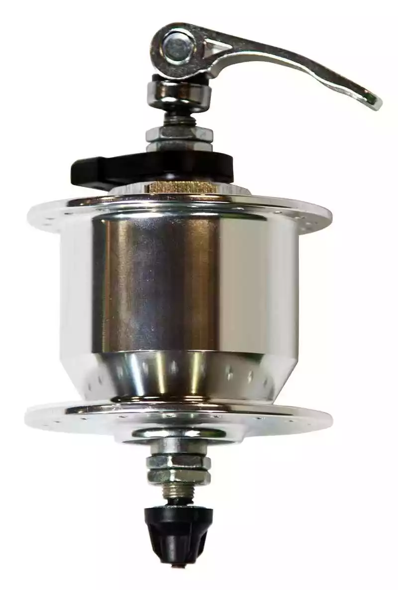 Ein günstiger, geräuschloser und zuverlässiger Nabendynamo mit guter Lagerung dank wartungsfreien Industrielagern. Lieferung mit Schnellspanner. Die Räder werden mit robusten, geösten Alex-Felgen und DT 2mm-Speichen eingespeicht. Einsatzbereich: zuverlässiges, preiswertes Modell für Stadt- und Alltagsvelos. 36-Loch. 880g.