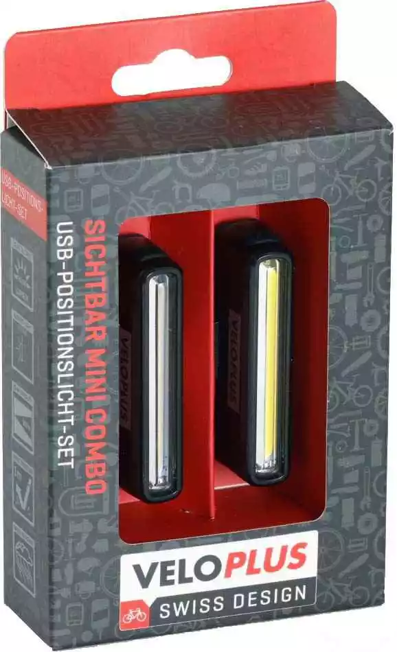 Das SICHTBAR MINI COMBO von VELOPLUS SWISS DESIGN ist ein kompaktes Positionslicht-Set mit smarten Funktionen.