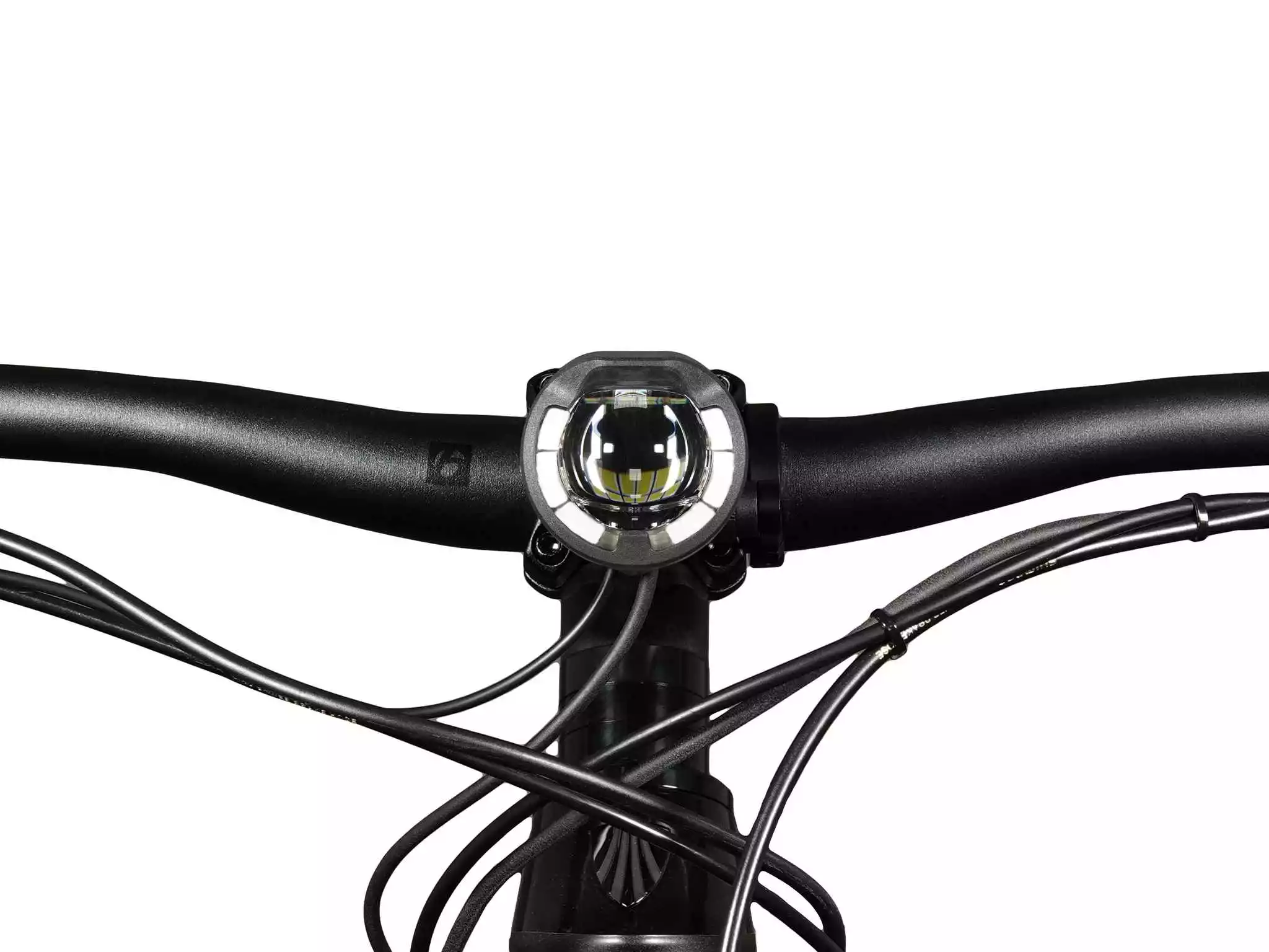Das Mass der Dinge in Sachen E-Bike Scheinwerfer! Die SL F Bosch ist für E-Bikes mit Bosch-Antrieb in Kombination mit dem Purion- und Kiox-Display entwickelt worden. 900 Lumen Abblendlicht erhellen die Fahrbahn sehr homogen auf eine Distanz von 250 Meter. Dies ohne den Gegenverkehr zu blenden, ganz entscheidend für die Sicherheit aller Beteiligten. Auf Tastendruck entfesselt man das 1300 Lumen starke Fernlicht. Somit ist man ebenfalls gerüstet, wenn man mit dem E-MTB anspruchsvolle Trails fahren möchte oder schnell auf unbeleuchteten Feldwegen unterwegs ist. Das Tagfahrlicht erhöht die eigene Sicherheit massiv und schaut optisch sehr elegant aus. Per Sensor schaltet das Licht beim Eindunkeln automatisch auf Abblendlicht um. Das Licht ist sehr schön und dezent in der Lenkermitte angebracht, dies dank des mitgelieferten Halters. (D)