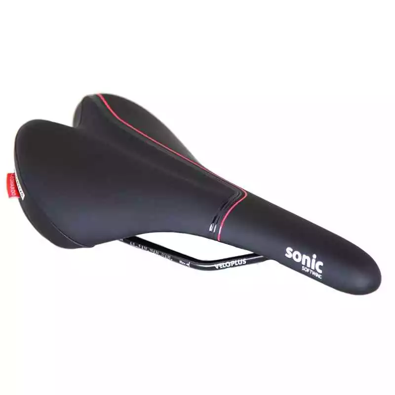 Der SONIC II ist ein speziell ausgerüsteter Sattel, mit flexiblen „Softwings“. So bewegen sich die Seitenflügel des Sattels bei der Tretbewegung mit und Scheuerstellen werden vermieden. Eigens entwickelt von Veloplus, überzeugt auf dem MTB, dem Touren- oder Rennvelo.