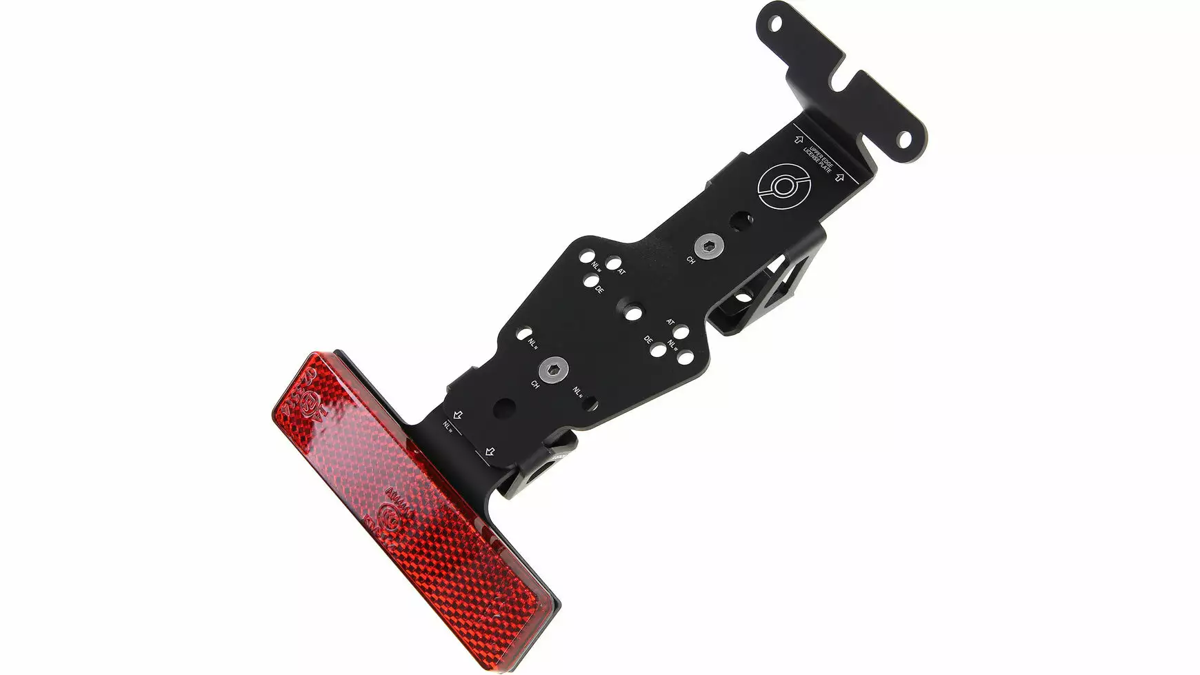 Erste Universallösung für alle EU-Kennzeichengrößen! Am L1e Legal Kit für S-Pedelecs können alle Kennzeichenvarianten montiert werden. Das zweigeteilte, höhenverstellbare Profil ermöglicht es Herstellern, ein und denselben Halter für ein europaweit vertriebenes S-Pedelec zu benutzen. Die unterschiedlich großen Kennzeichen können dank der selbsterklärenden Lasermarkierungen so montiert werden, dass sie sicher befestigt und immer korrekt beleuchtet sind. Das ECE-konforme Rücklicht mit integrierter Kennzeichenbeleuchtung und Bremslicht, sowie der rote Reflektor sind automatisch stets optimal positioniert. Das L1e Legal Kit kann an allen gängigen Schutzblechradien montiert werden.