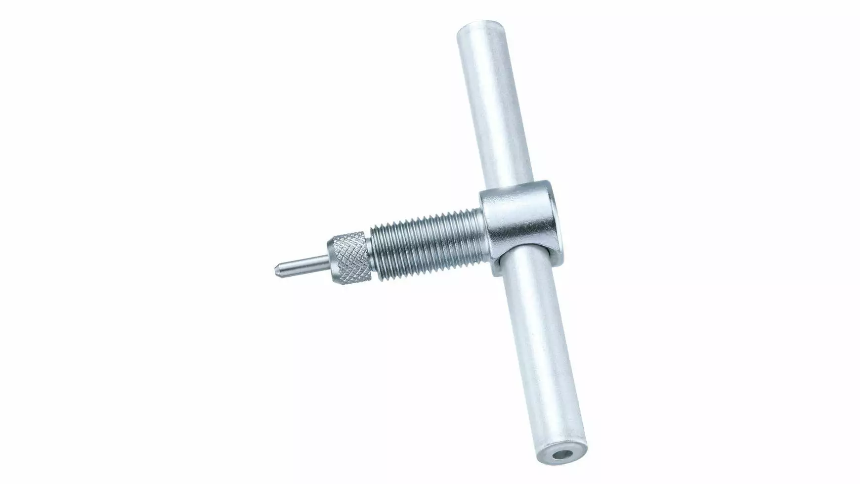 Hochqualitativer Kettennieter mit austauschbarem Niet-Pin für Single- und Multi-Speed Ketten bis 12-fach sowie Campagnolo® 11-fach Hollow Pin Ketten. Der enthaltene Kettenfixierhaken hält die Kette während des Nietens in Position. Kettenfixierhaken und Ersatz-Niet-Pin (enthalten) sind im Griff verstaut.