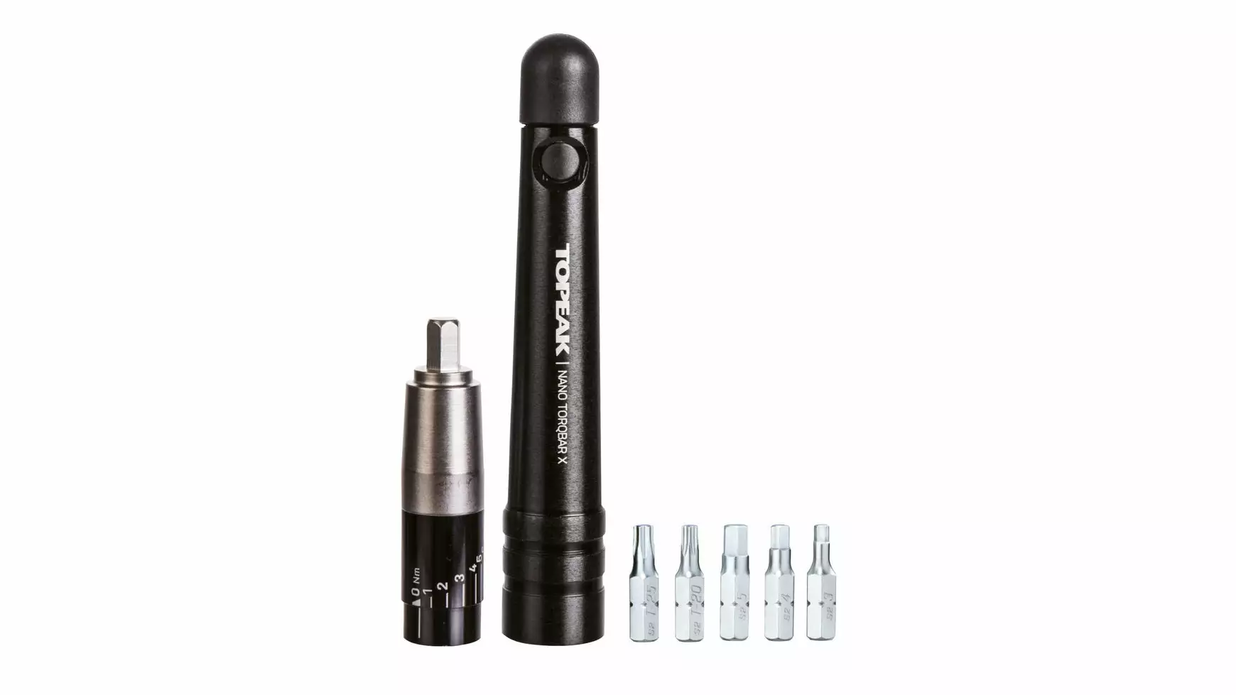 Extrem kompakter Drehmomentschlüssel mit besonders einfacher Handhabung und Ablesung, der stets für das richtige Drehmoment an den meisten Schraubverbindungen von empfindlichen Anbau- und teuren Carbonteilen sorgt. Für schnellstmöglichen Zugriff lassen sich die beiden wichtigsten Werkzeugbits im Griff des TorqBar X+ verstauen. Drehmomentbereich: 1-6 Nm.