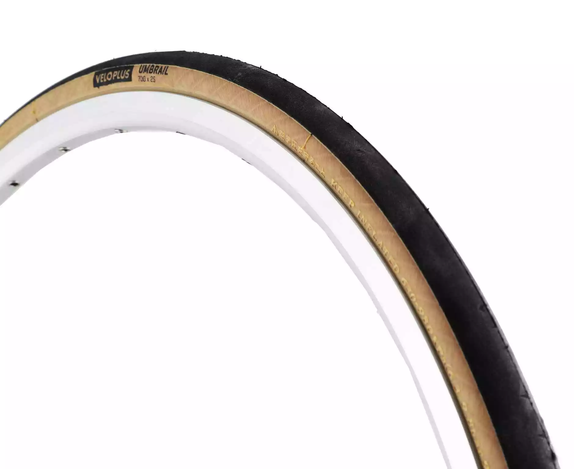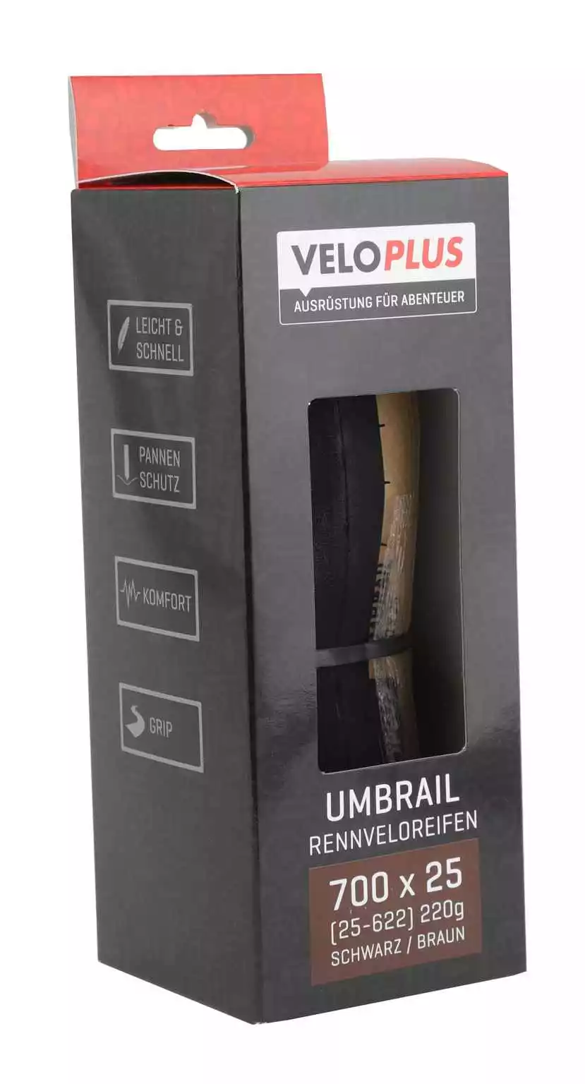 Unser Rennveloreifen UMBRAIL ist leicht sowie leichtläufig und hat trotzdem einen effektiven Pannenschutz. Dies ist möglich dank dem erhöhtem Latexanteil in der Gummimischung und der schnittfesten Aramid-Einlage.